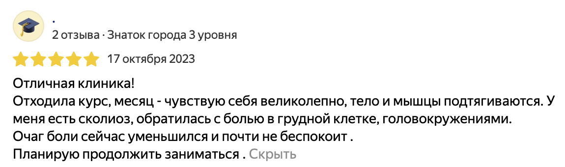 В этих клиниках пациентам помогают лечить заболевания позвоночника и суставов, проводят реабилитацию после травм и операций, учат правильно заниматься лечебной физкультурой.